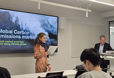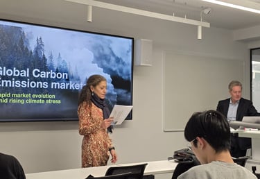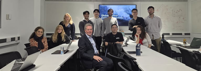 Colin Waugh gave a guest lecture at Bayes Business School in London on December 10, 2025 on the topic: “Global Carbon Emissions Markets: Rapid Evolution Amid rising Climate Stress”