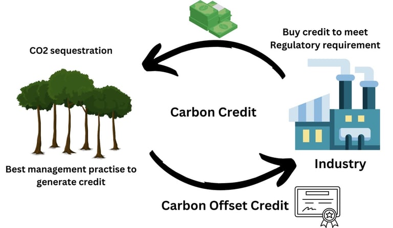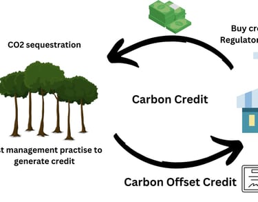 Regulation: Carbon credits are often part of regulatory frameworks and can be traded in carbon markets, while carbon offsets are generally voluntary and purchased by companies or individuals looking to reduce their impact.